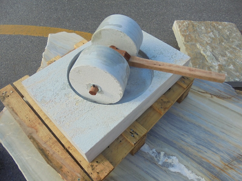 Bloc scié - forme spéciale - moulin à olives - numéroté - 75 kg